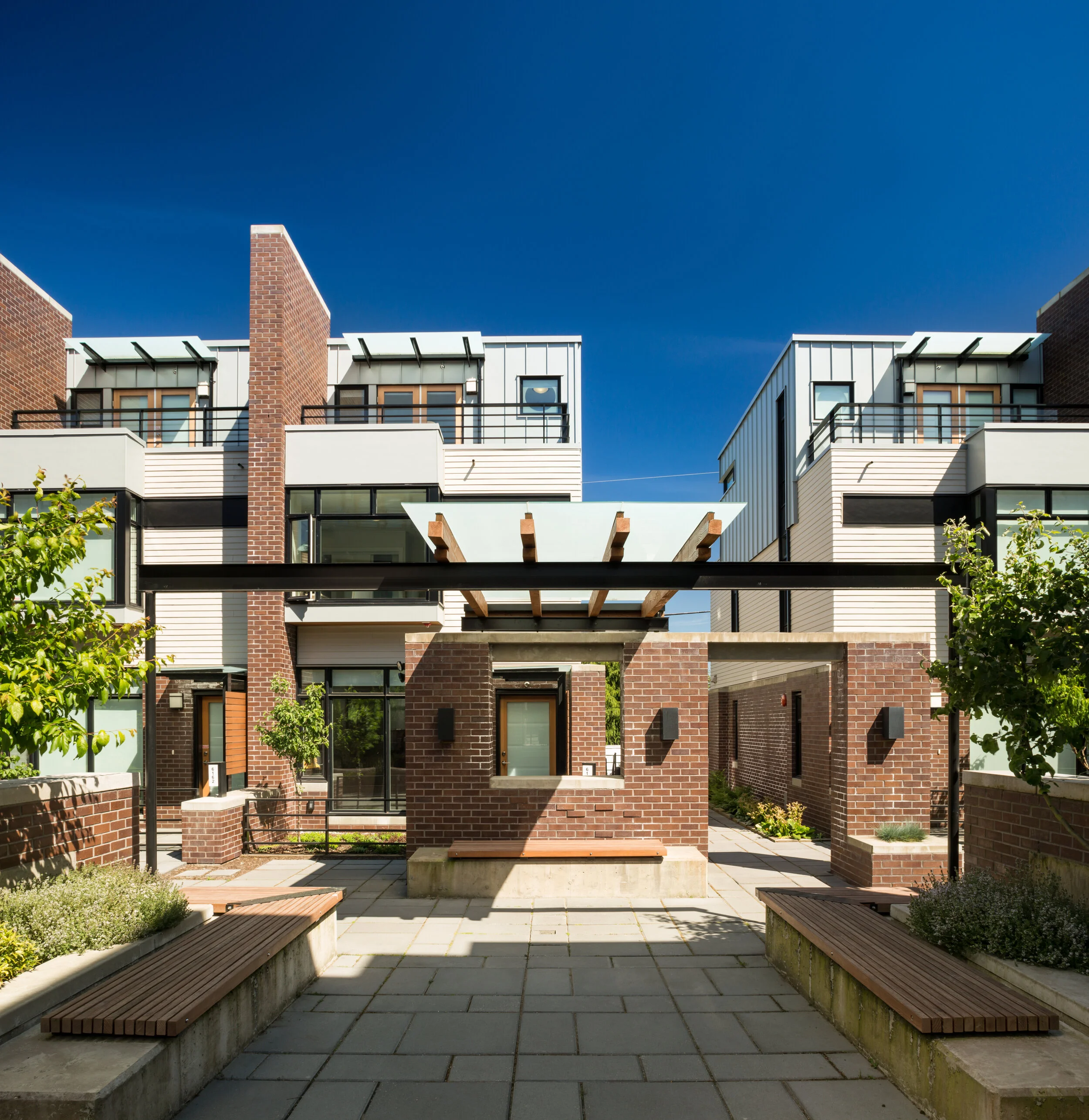 Oak: View SW to Mews. Design Concept: Gregory Borowski at Merrick Architecture for Listraor. Photo: Ema Peter: 2015